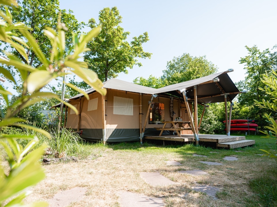 Das Medley Lodge ist ein echter Hingucker. Der Eingang befindet sich an der Längsseite, was eine offene und einladende Atmosphäre schafft. Dies gibt Ihnen auch die Möglichkeit, das Lodgezelt praktisch und effizient einzurichten.
