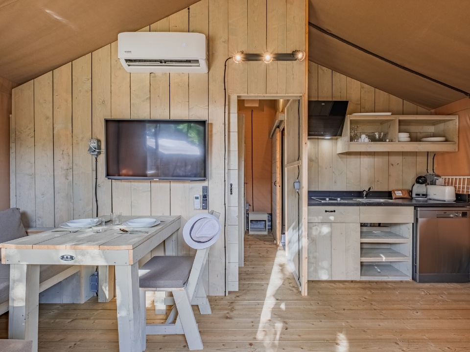 Das Safarizelt Wood ist ein echter Klassiker, aber mit allen modernen Annehmlichkeiten ausgestattet. Dieses vollwertige Safarizelt war der Beginn unserer Glamping-Reise und ist immer noch eines unserer beliebtesten Modelle. Es ist das perfekte Zelt für einen unvergesslichen Familienurlaub. Das Wood ist mit einer Küche und sanitären Einrichtungen ausgestattet und bietet Ihren Gästen jeglichen Komfort, den sie benötigen.